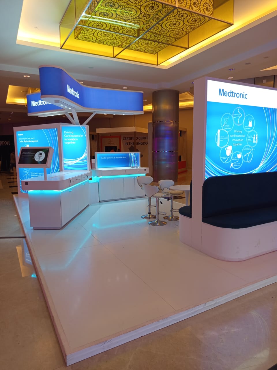 ومن هذا المنطلق، قمنا بتصميم وتنفيذ بوث معرض (Exhibition Booth) خاص بالشركة خلال مشاركتها في أحد المعارض المقامة بفندق Crowne Plaza بالمملكة العربية السعودية، وذلك بهوية تصميمية تعكس طبيعة نشاطها الطبي وتُبرز منتجاتها بأسلوب عرض احترافي يجذب الزوار.